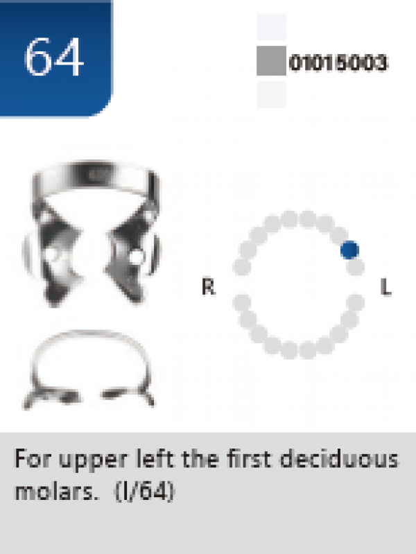DENTECH KSK Rubber Dam Clamps Deciduous Matt #64, For upper left the first deciduous molars.