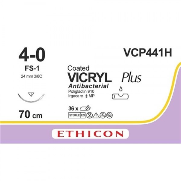 Ethicon Sutures PLUS Vicryl, Undyed, 24mm, 4/0, FS1 3/8 Circle Reverse Cutting, 36-Pack