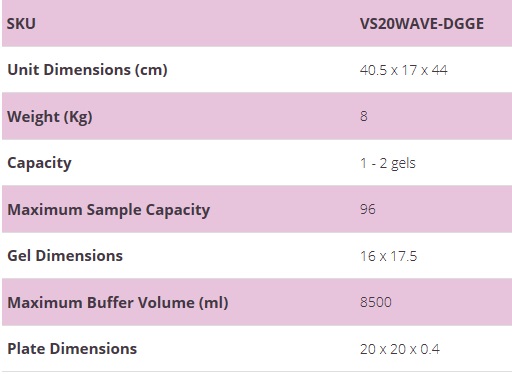 Denaturing Gradient Gel Electrophoresis (DGGE) is an important technique used in the search for mutations and DNA polymorphisms critical in genetic disorders and cancers, and to understand genetic diversity among species. The new omniPAGE VS20WAVE-DGGE is a flexible system that can be fully customised to perform several different mutation detection techniques. The VS20WAVE-DGGE is a versatile single-unit solution for different single-base pair mutation detection methods. The newly designed VS20WAVE-DGGE is a complete system for DNA mutation analysis.