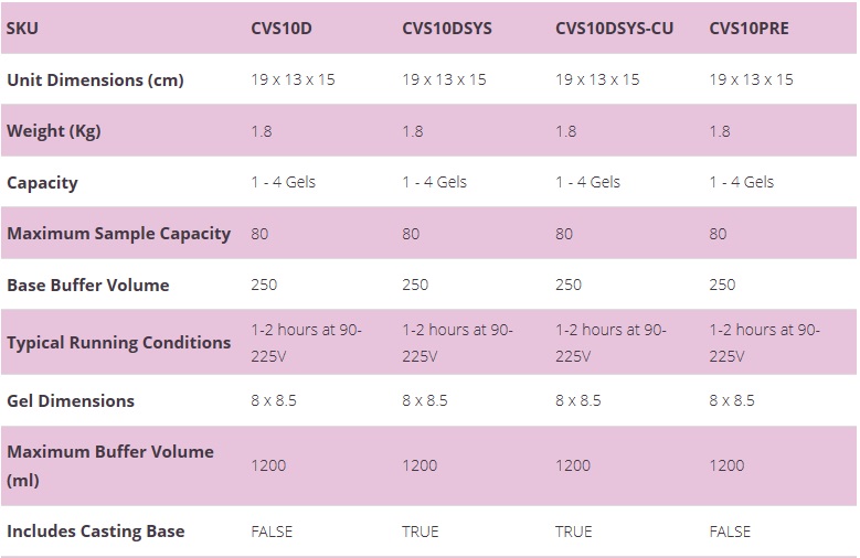By combining both functionality and ease of use, the omniPAGE systems set the bench mark for simple, versatile vertical mini gel electrophoresis. Each omniPAGE electrophoresis system can accommodate up to 4 handcast gels (additional plates required) or 2 commercial precast gels to provide complete flexibility for individual research needs, while unique sliding clamp technology within the PAGE insert facilitates fast, intuitive leak-free casting.