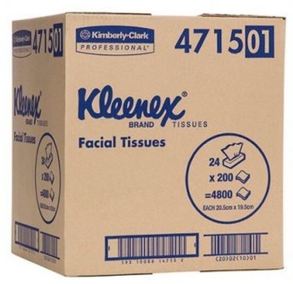 Kleenex Facial Tissues KC4715 – 2-ply – 200 tissues per box – Carton of 24 boxes