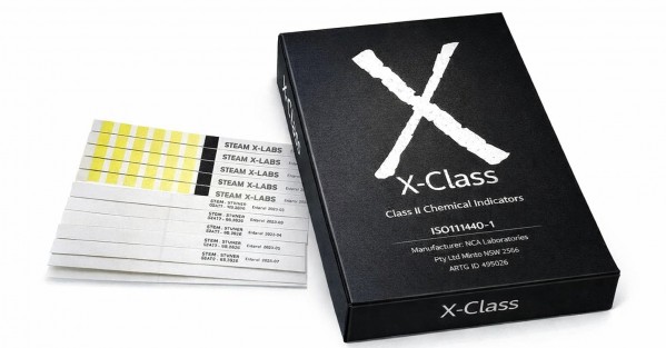 Class 2 Chemical Indicators strips 500/Box, X-Class Chemical made in Australia by NCA Labs, printed in the UK.