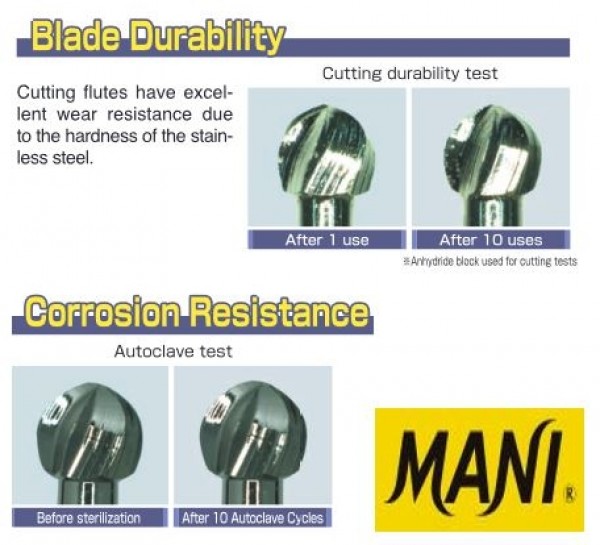 MANI STEEL BUR ROUND LONG SHANK 6/PACK